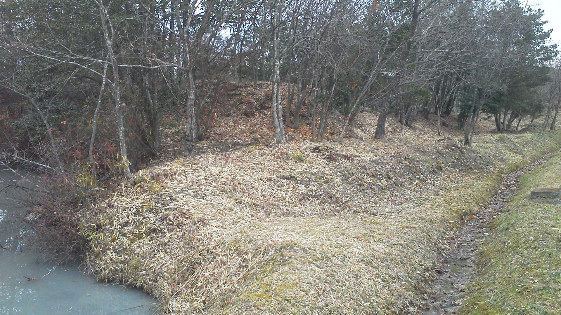 ▼前面にL字状の土手があります。
