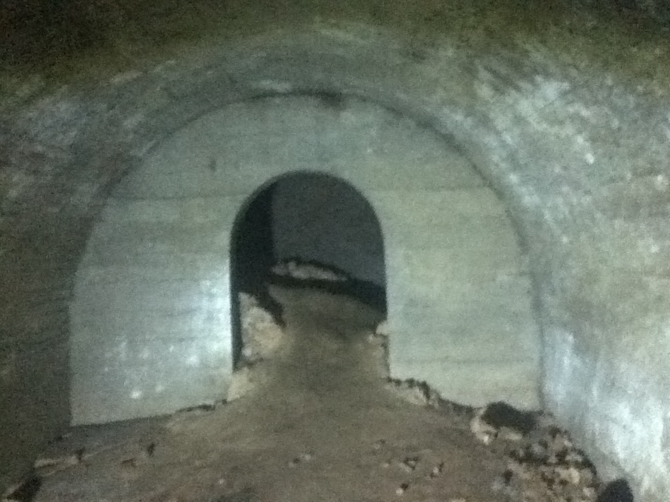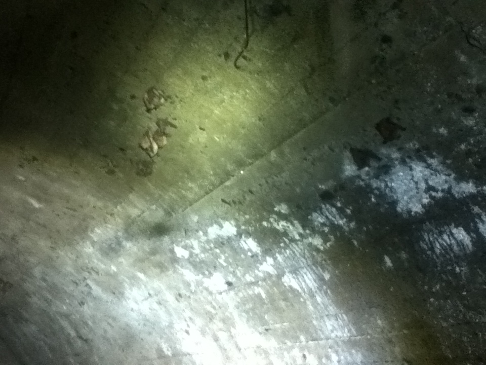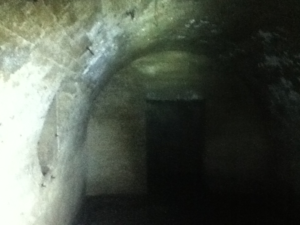 強酸性や強アルカリ性の劇薬を廃棄する為の廃液路です。溶けないように片方は陶製、もう片方はコンクリート製でできています。これらの液体を、海岸の施設で中和してから海に排水していいました。