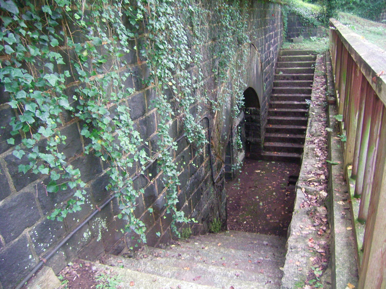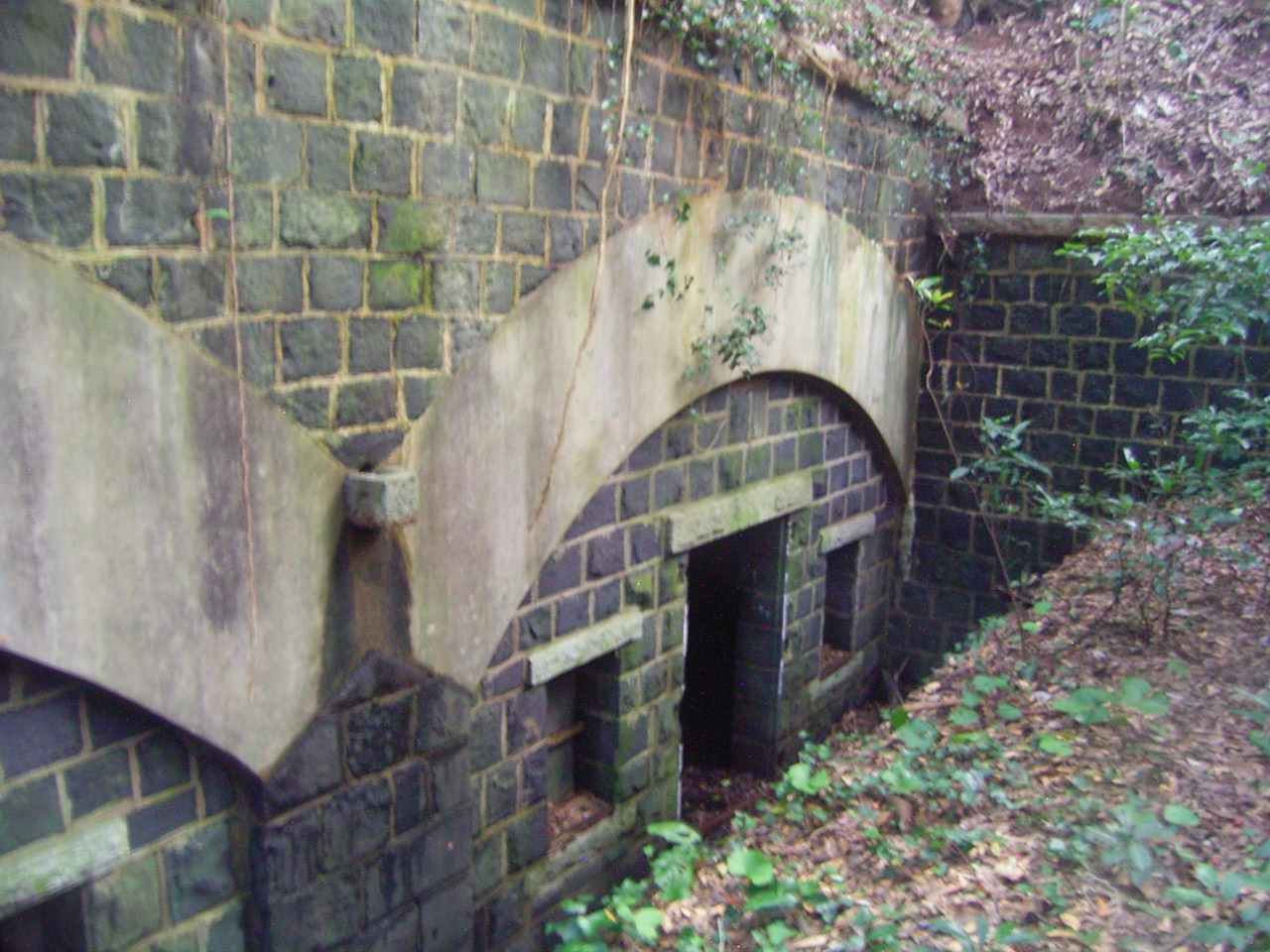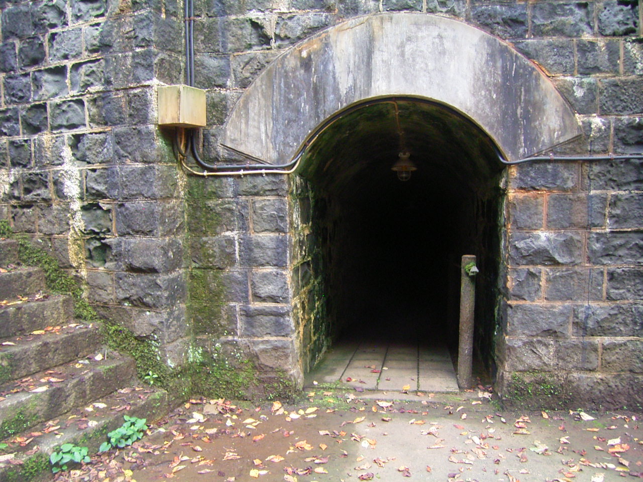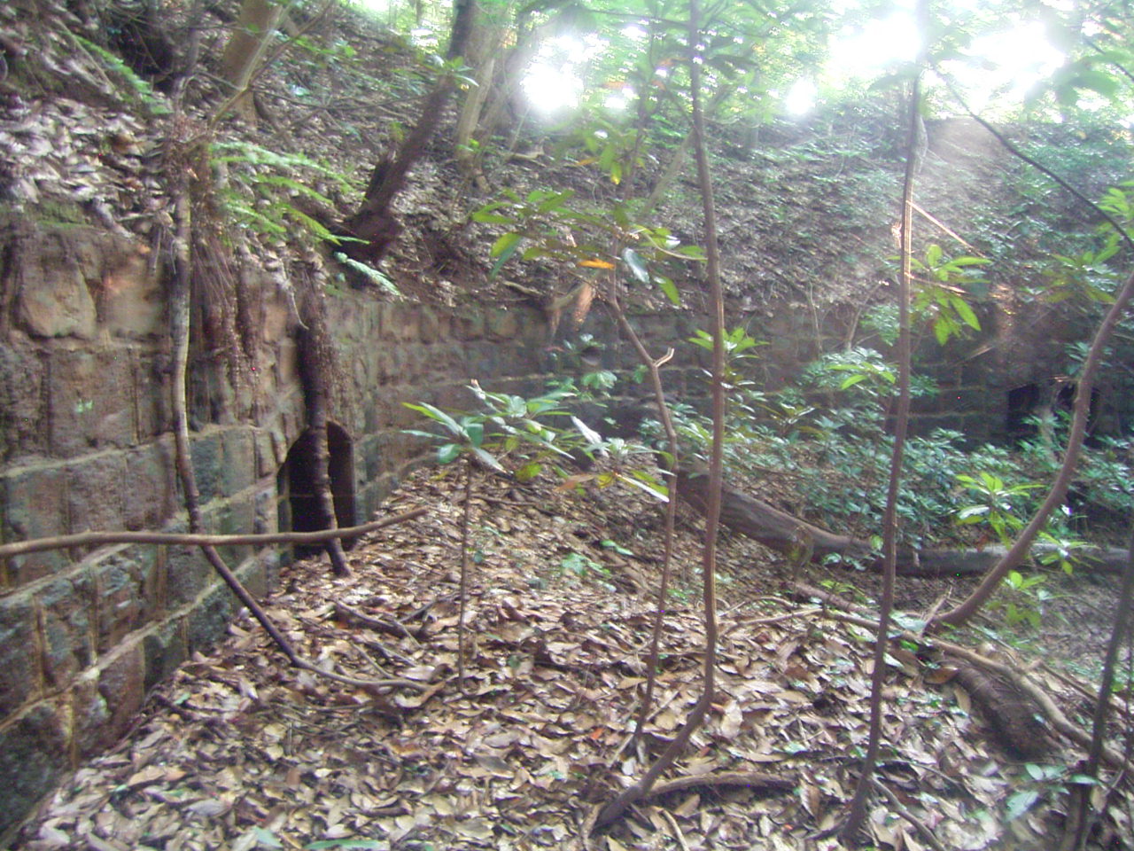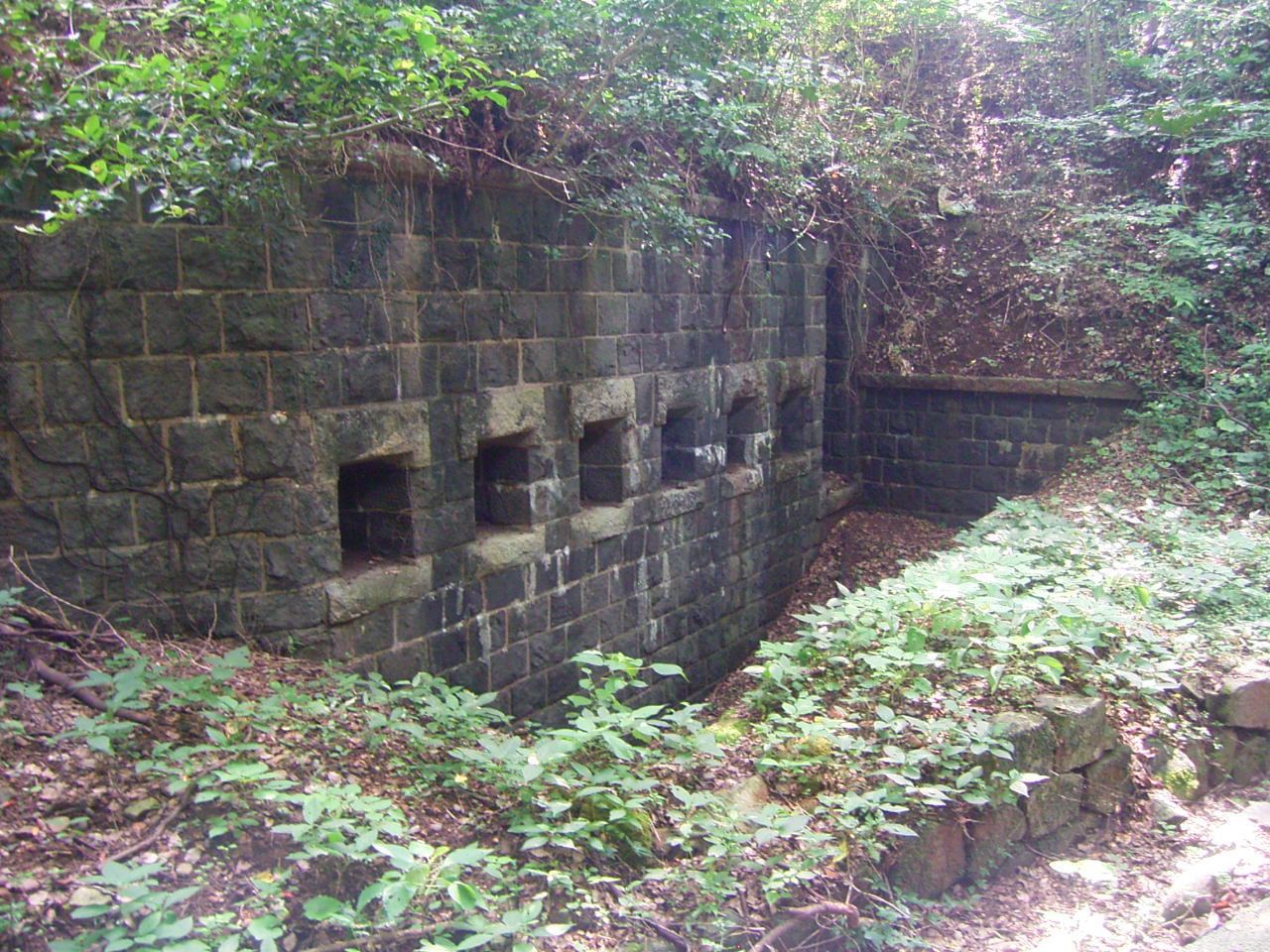 少し下ったところには防空壕が残っています。