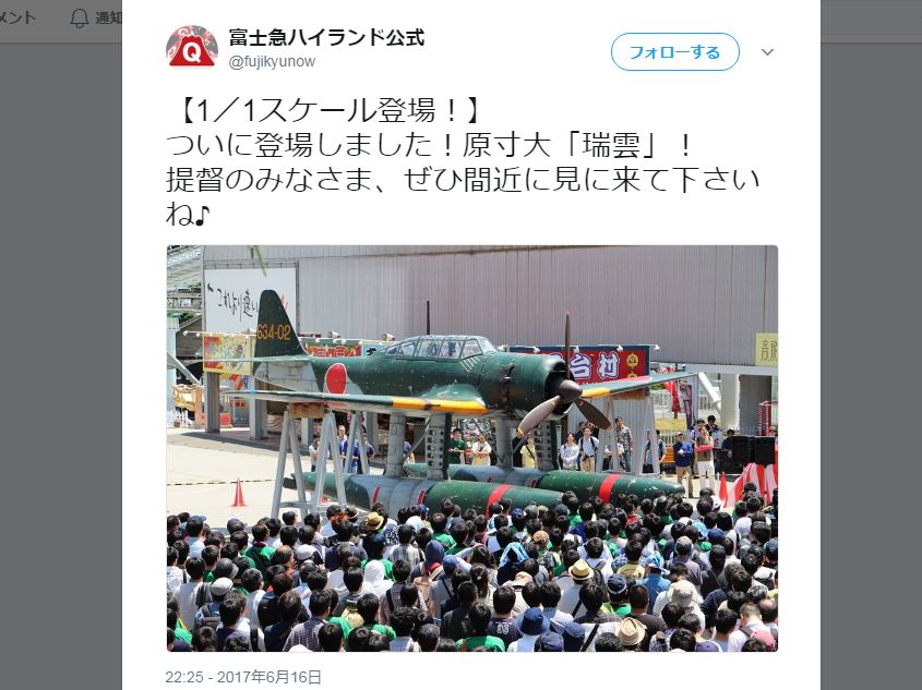 [富士急ハイランドにて瑞雲の模型が展示されるという話を受け]…あ