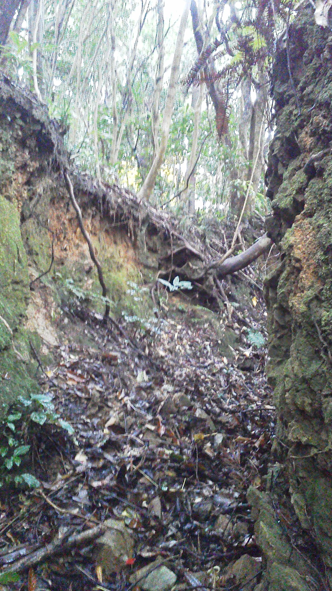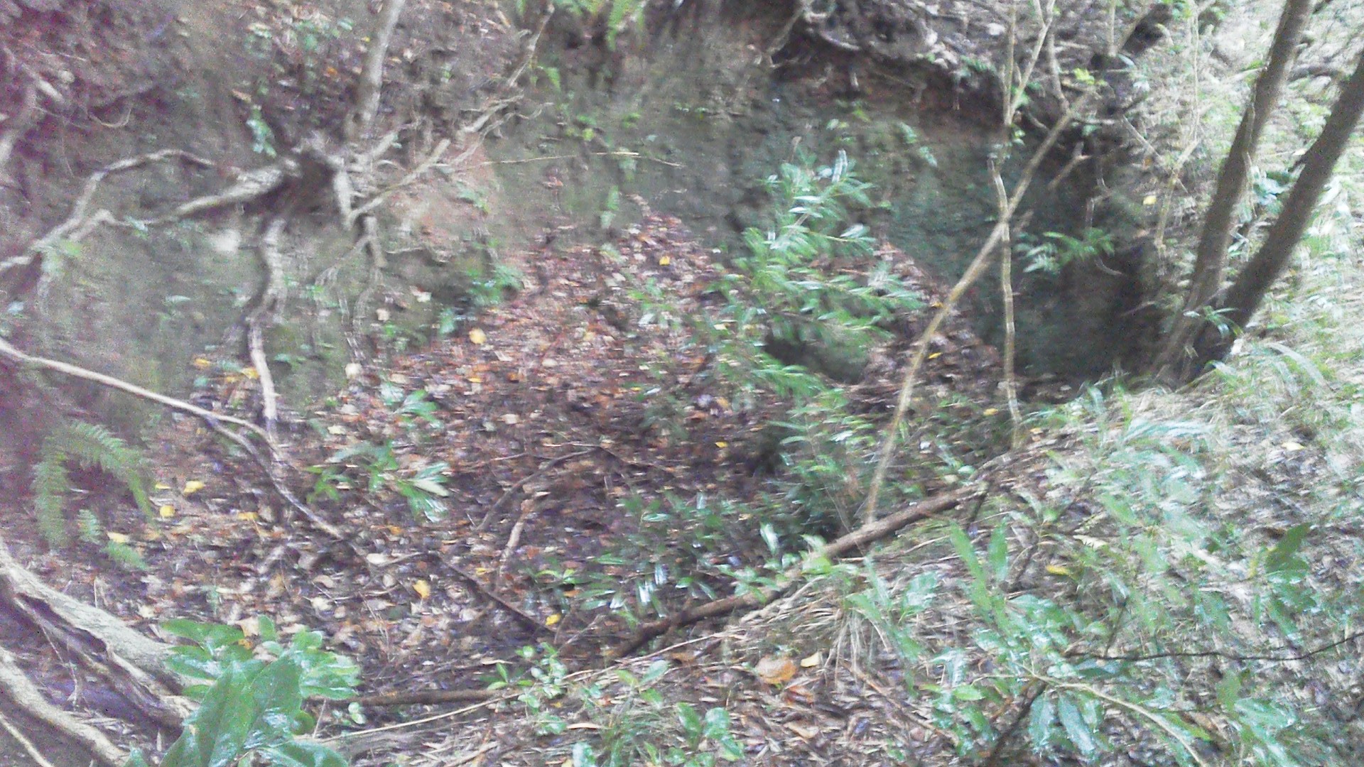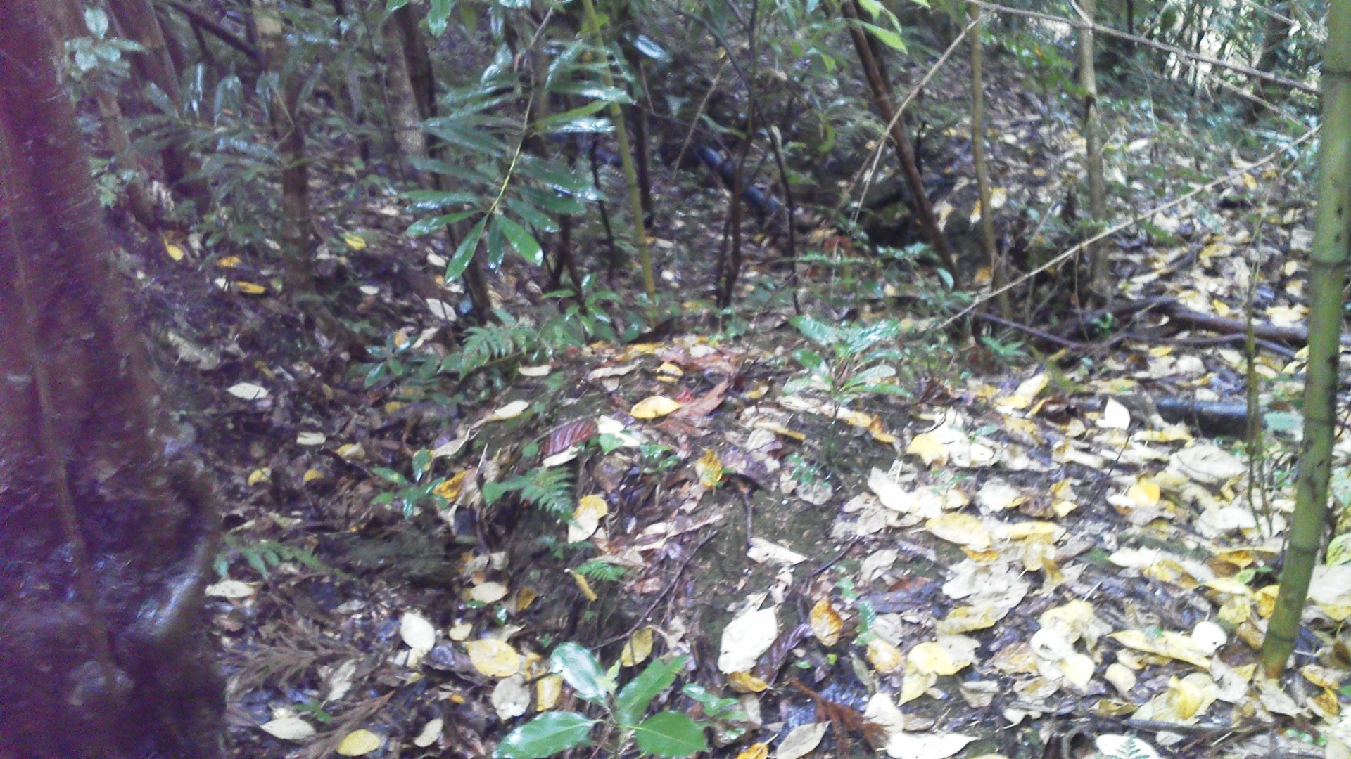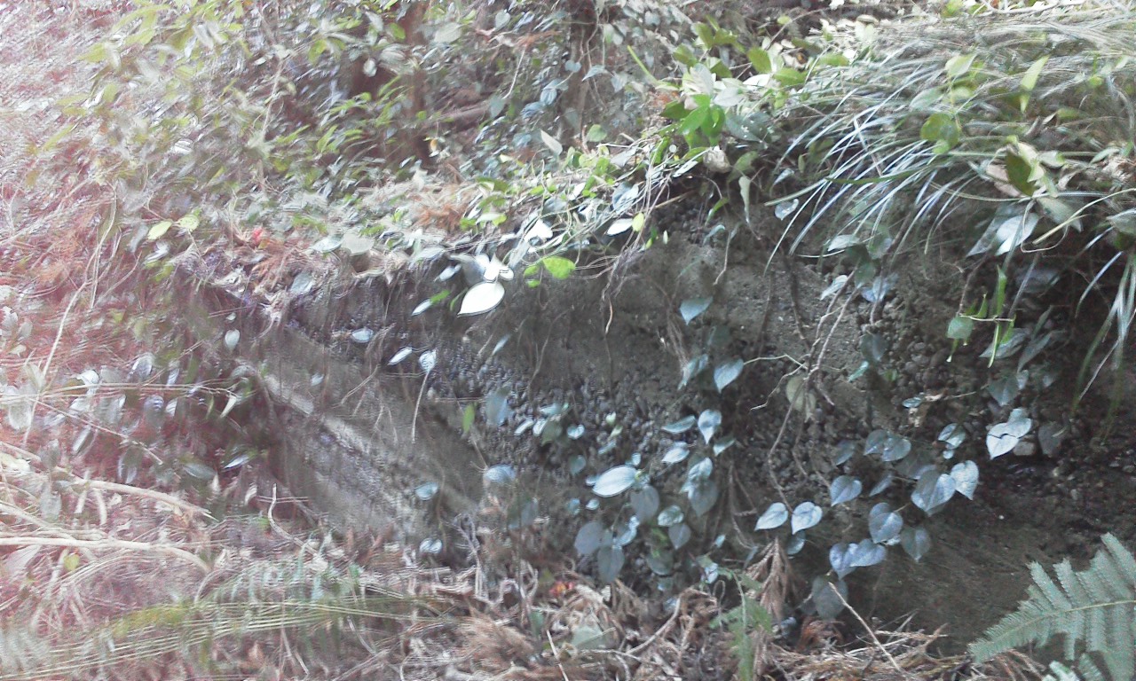 ▼居住壕兼通路。崩落しています。