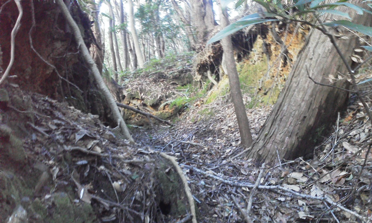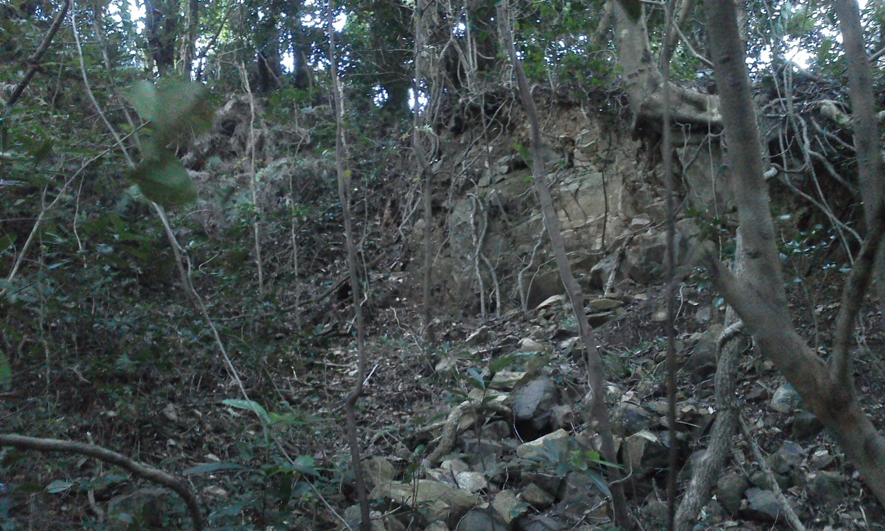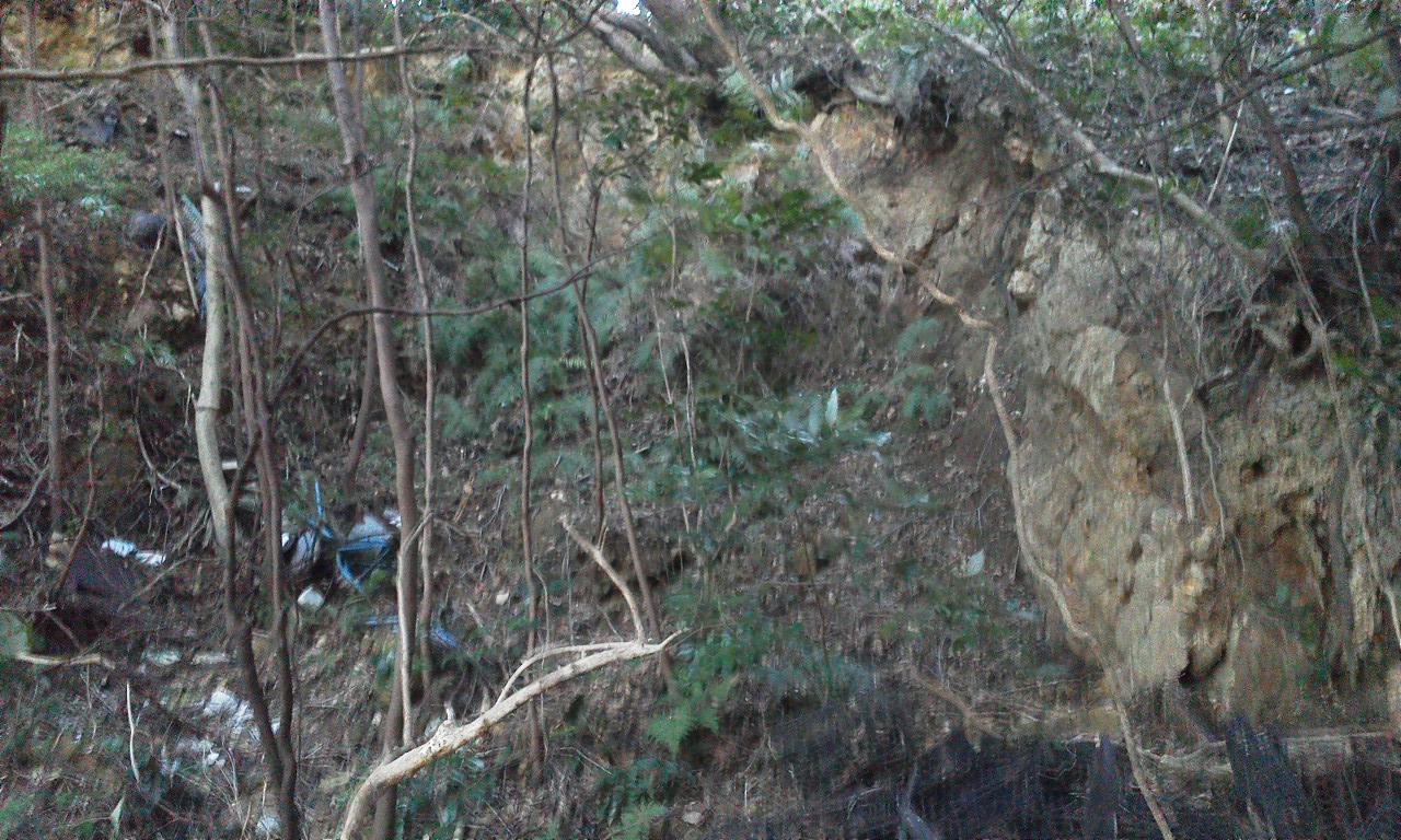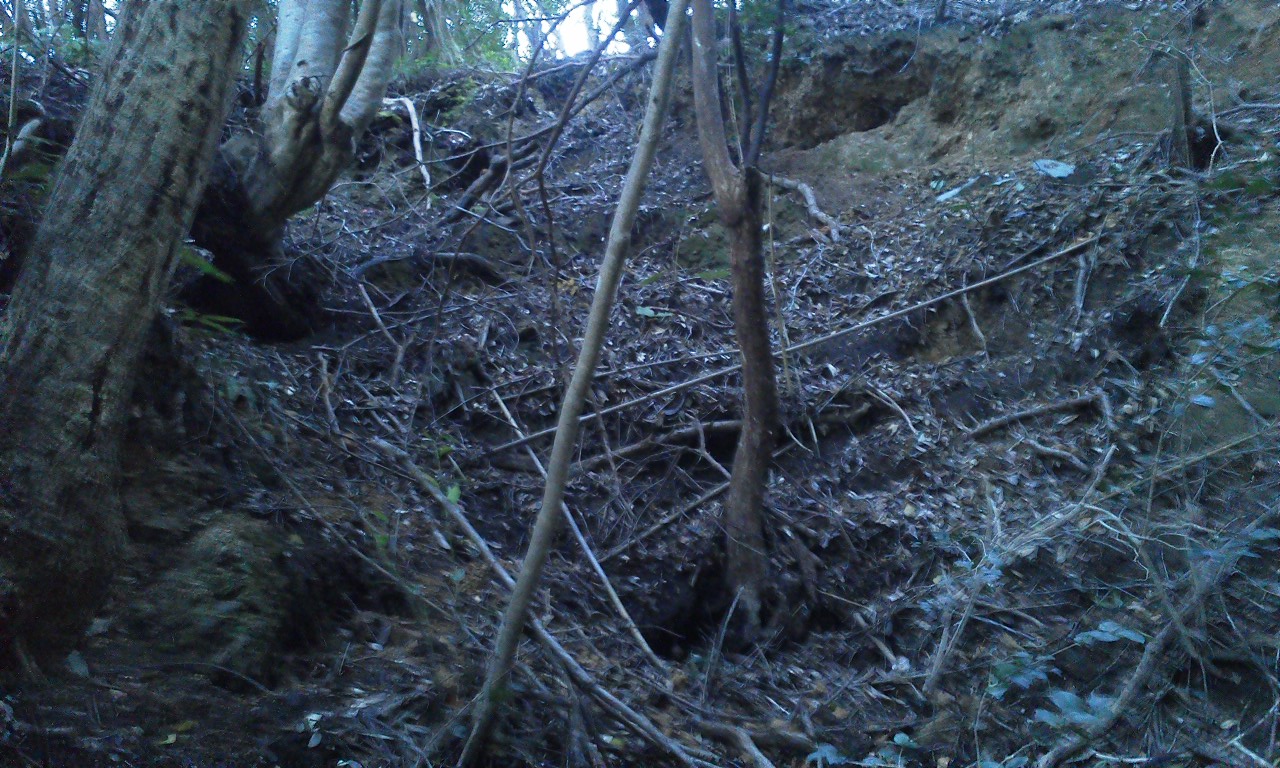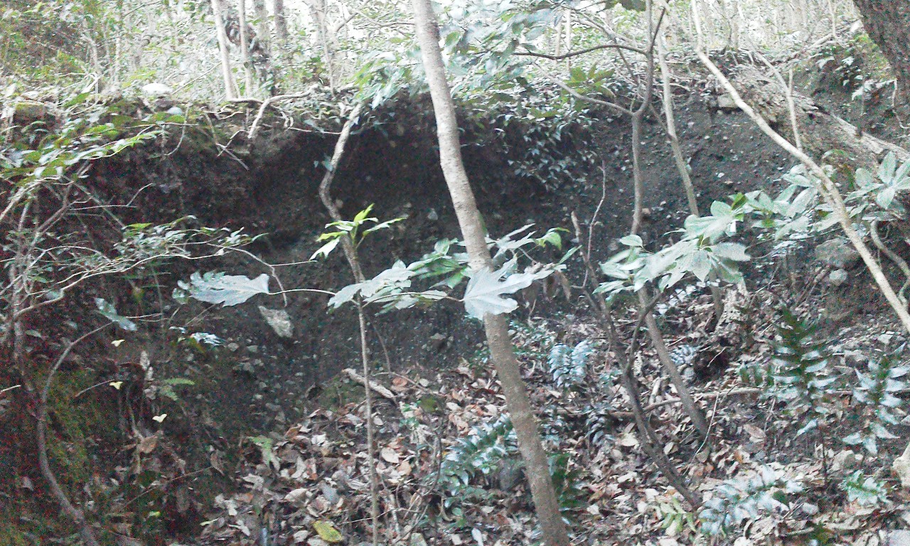 山の斜面には他にも壕の崩落した跡がみられます。全て素掘りの壕だったようです。