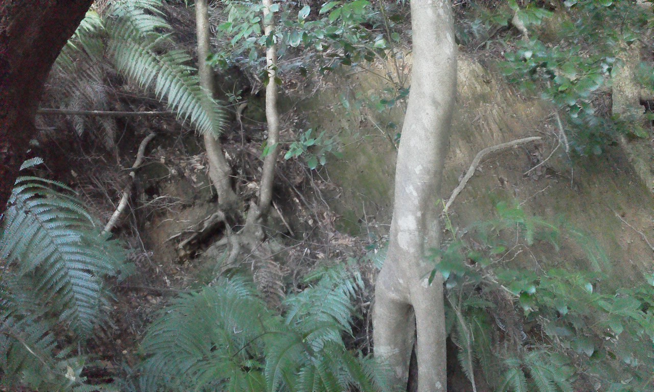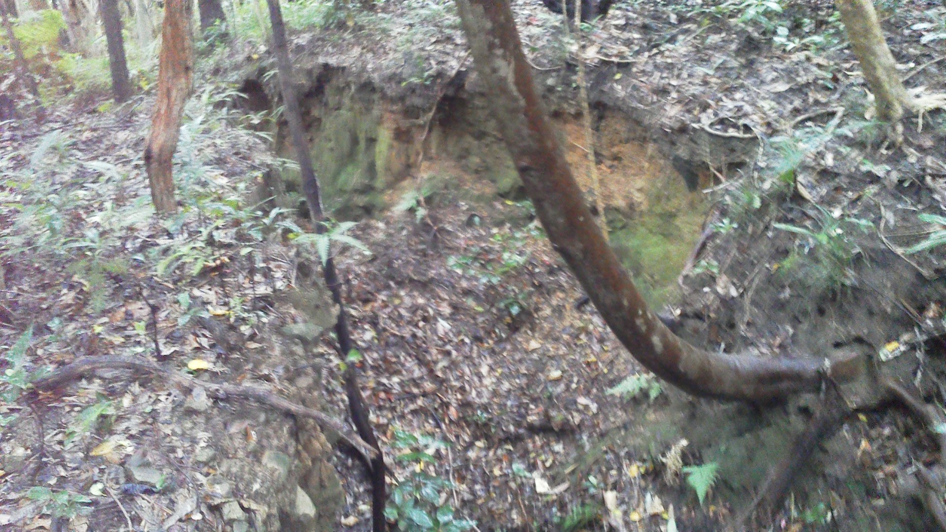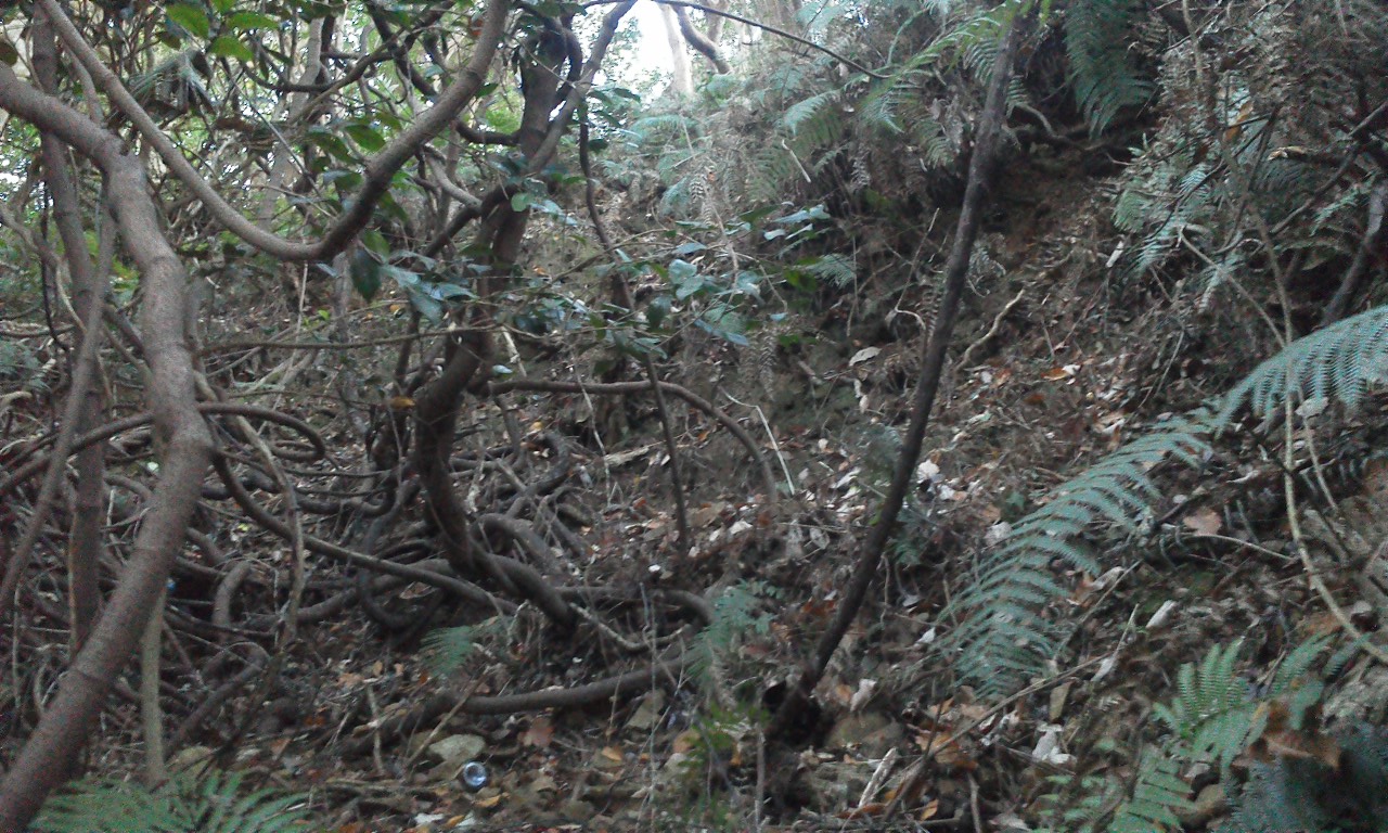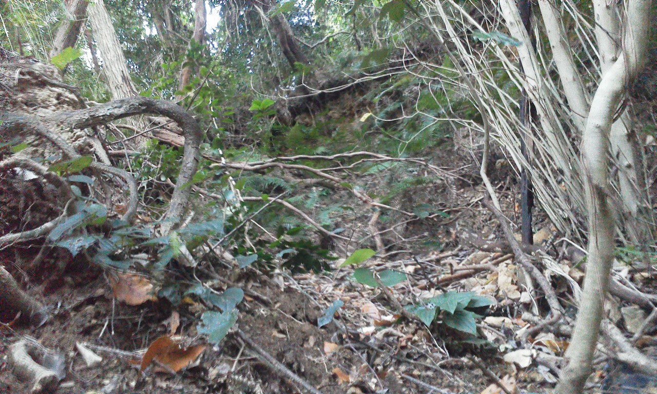 山の斜面には他にも壕の崩落した跡がみられます。全て素掘りの壕だったようです。