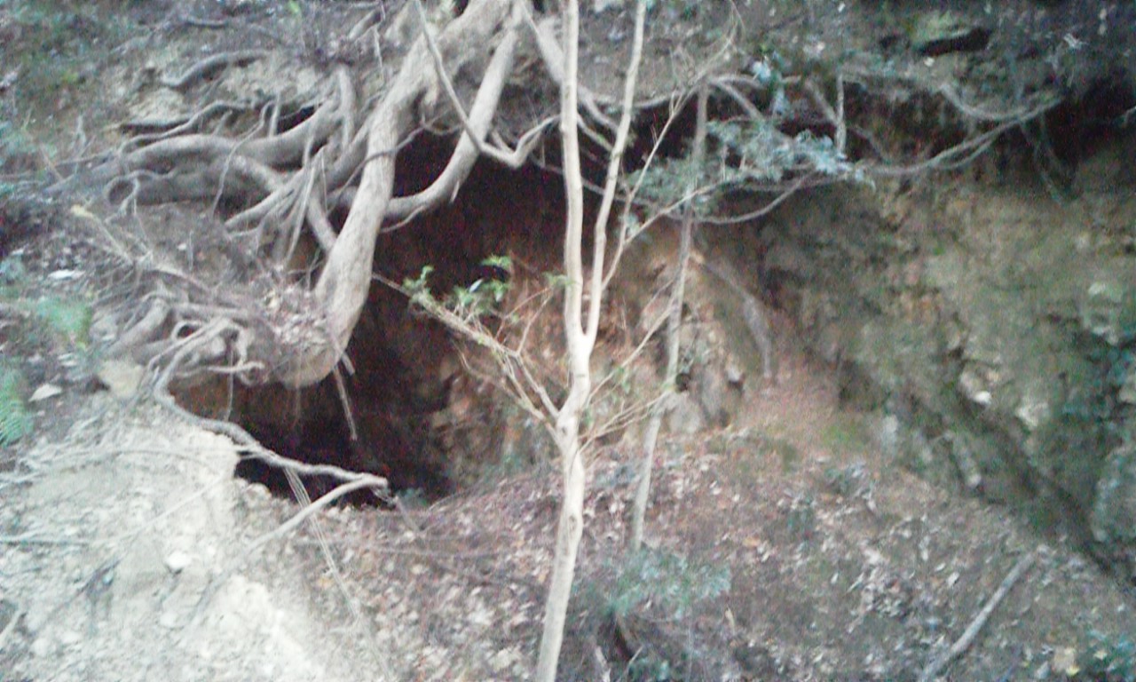 この壕は進入できそうです。内部もかなり崩落しています。