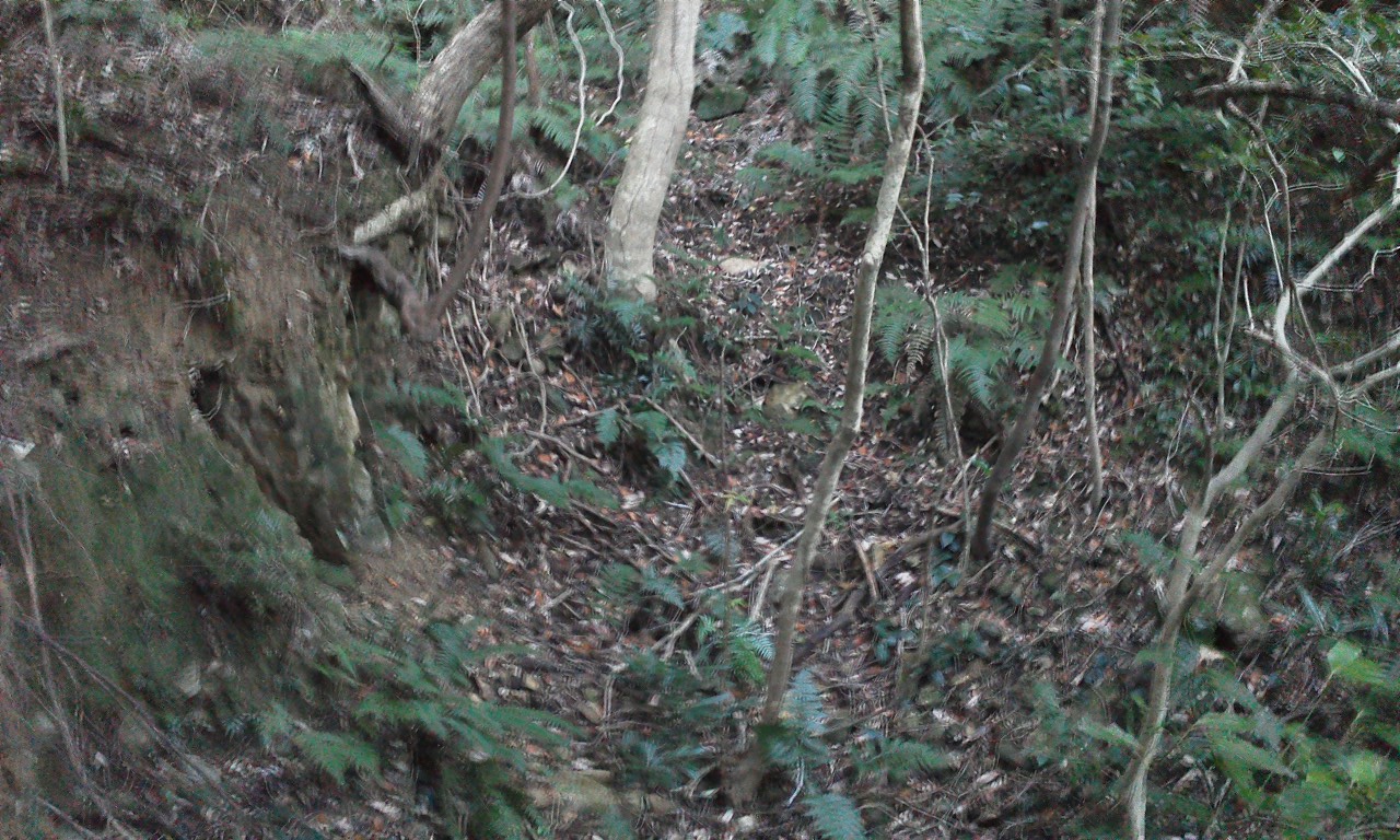 ▼壕の崩落した跡です。