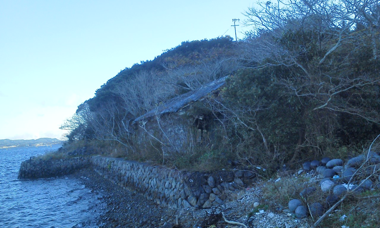 ▼発電機室のあった場所に漁師小屋が立っています。