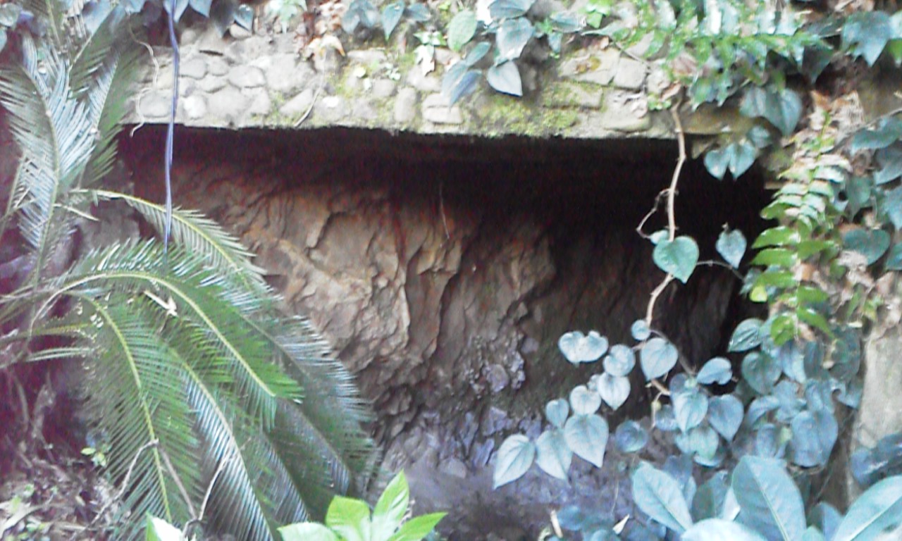 ▼燃料庫として利用された壕。崩落。