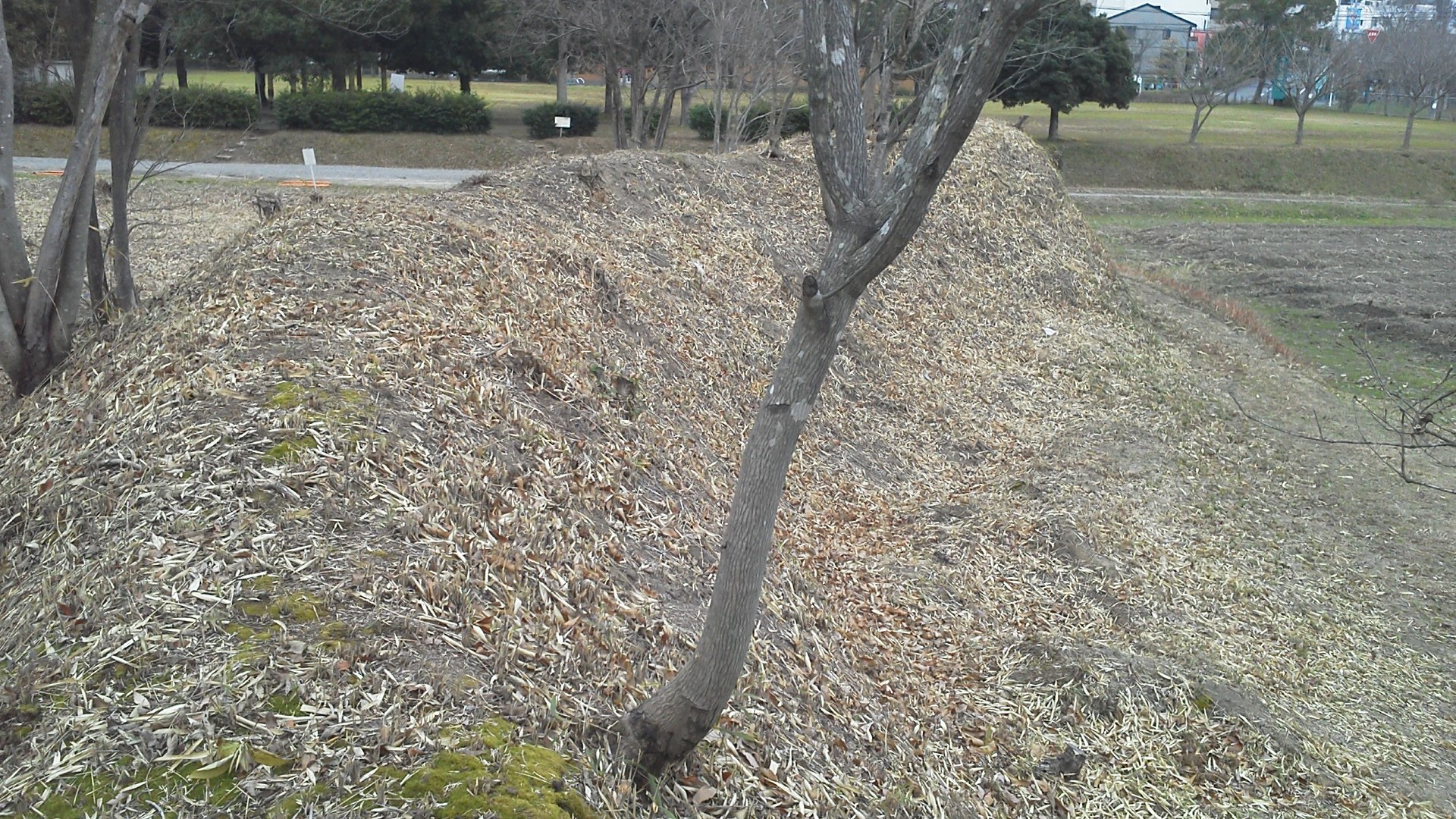▼前面にL字状の土手があります。