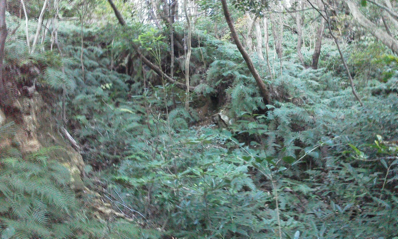 山の斜面には他にも壕の崩落した跡がみられます。全て素掘りの壕だったようです。