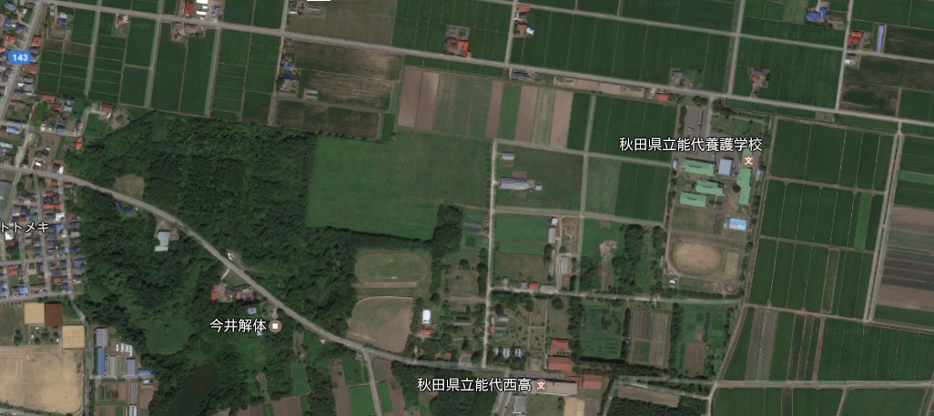 ▼現在(平成29)の能代飛行場周辺(google map)