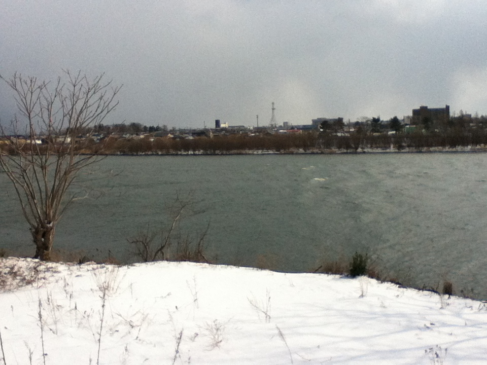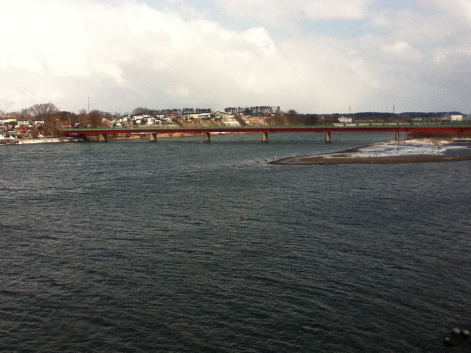 ▼東能代駅から米代川を渡り、向能代方面へ。