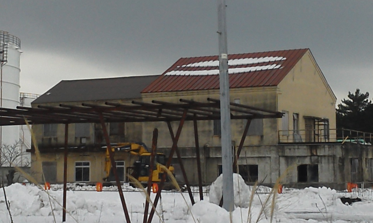何にも残っていません。数年前までは煉瓦造りの倉庫があったようですが。