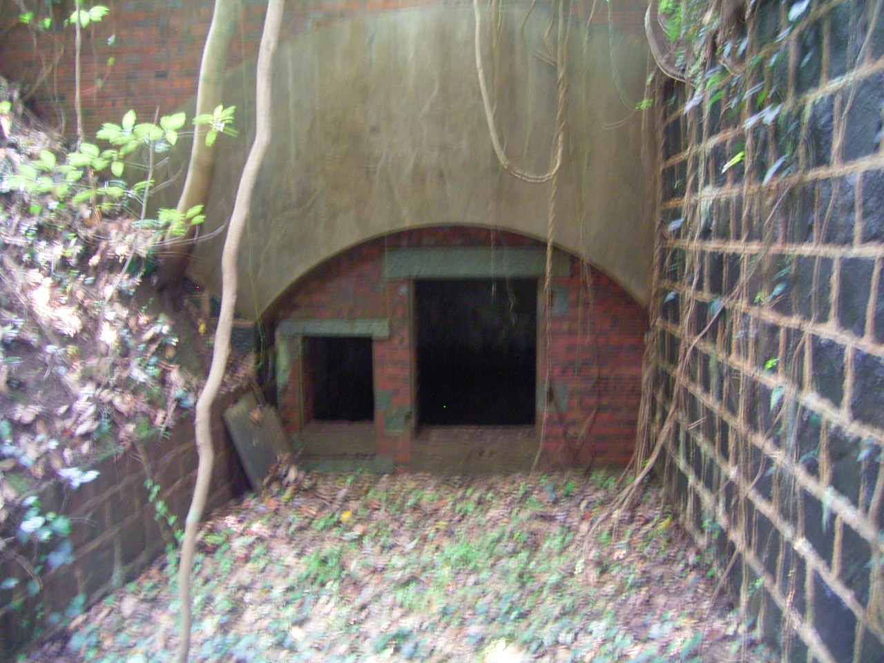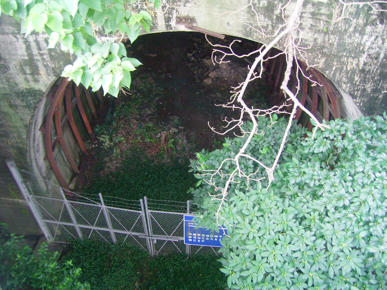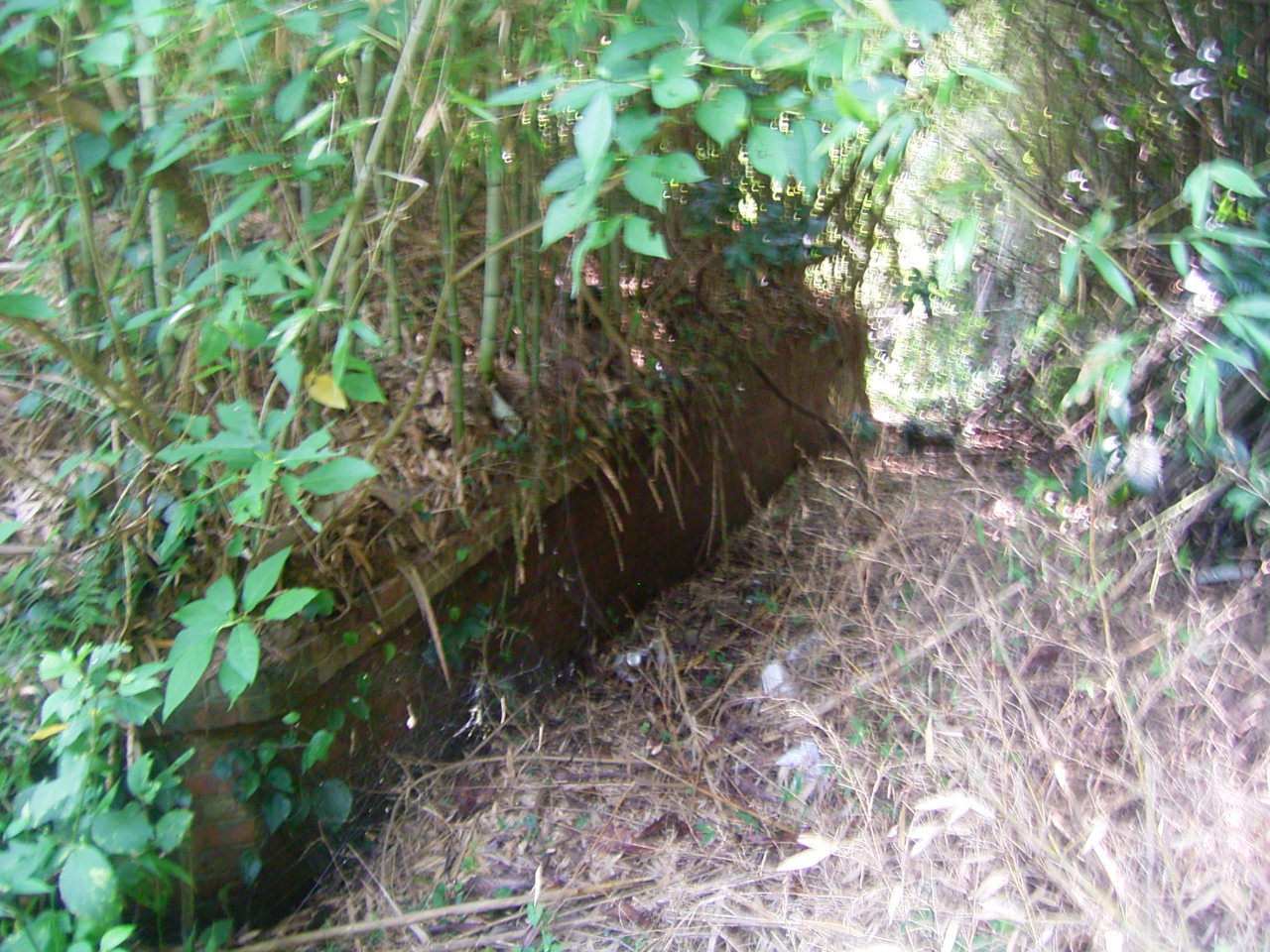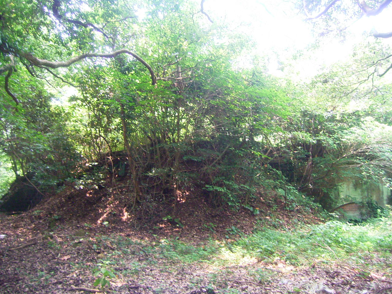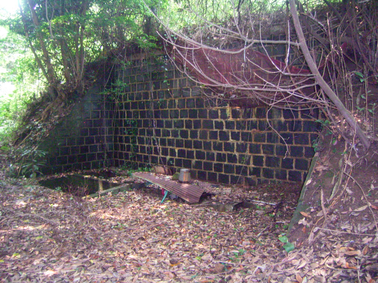 少し下ったところには防空壕が残っています。