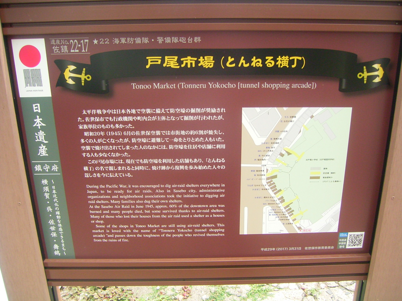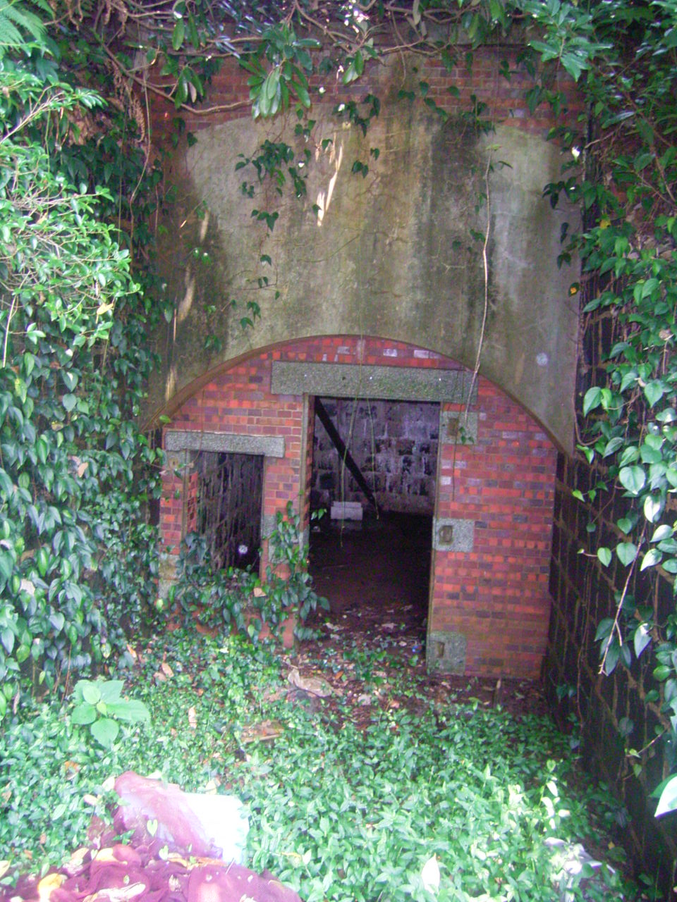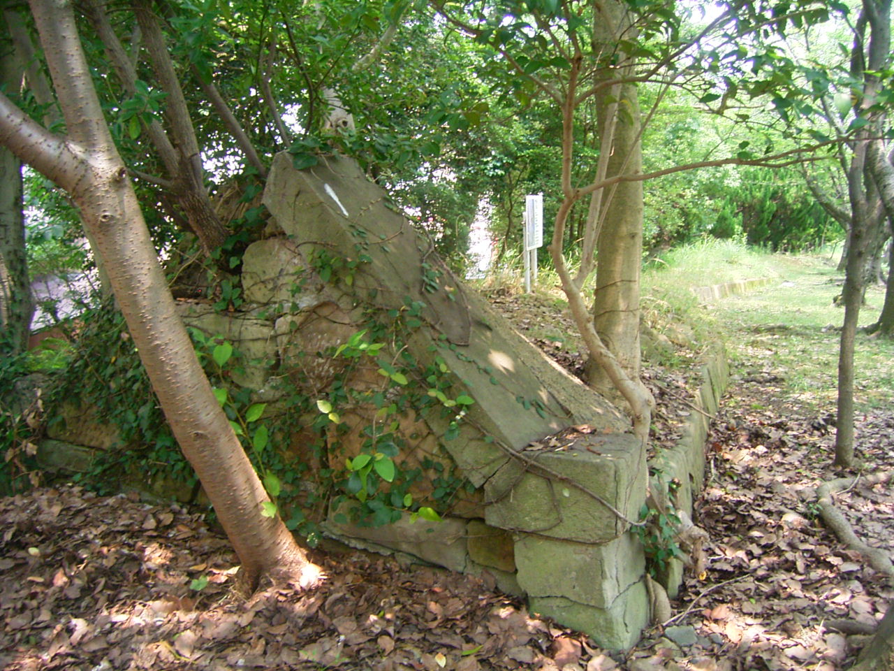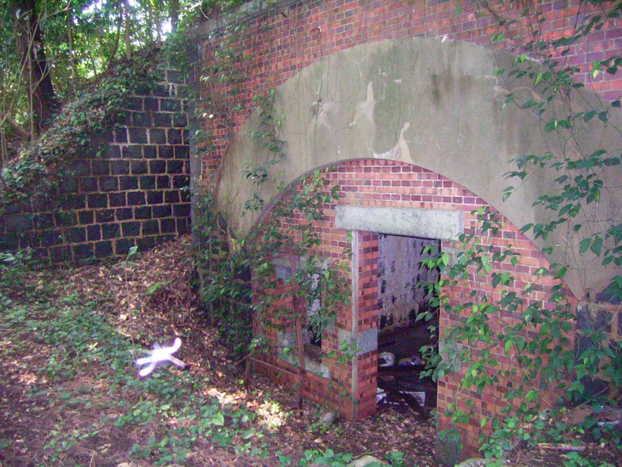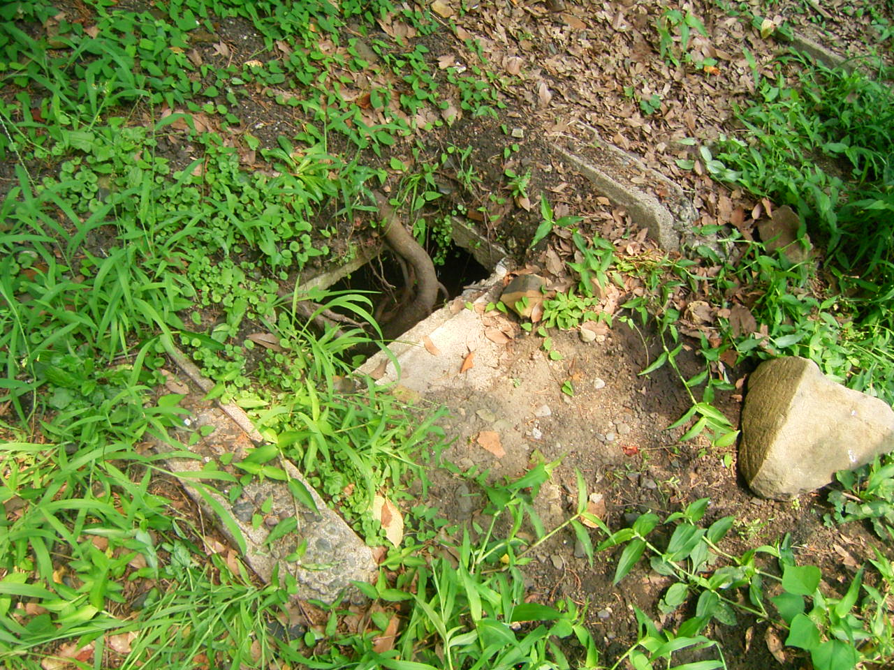 少し下ったところには防空壕が残っています。