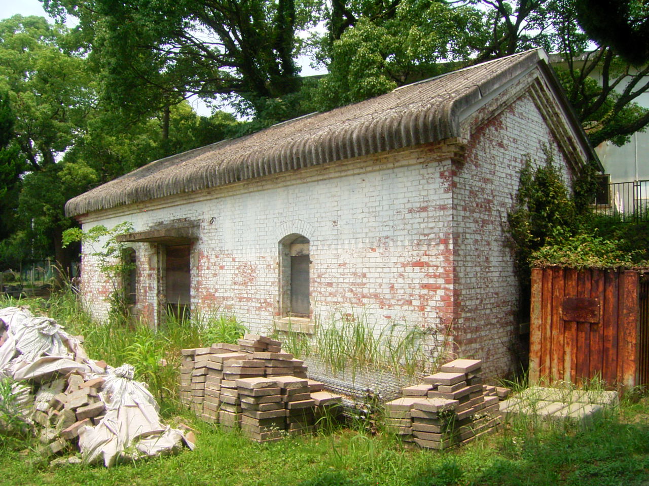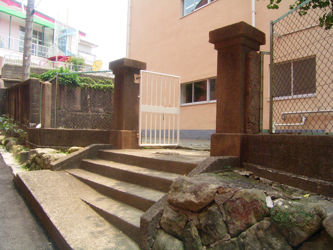 ▽元豚舎敷地に残る門柱