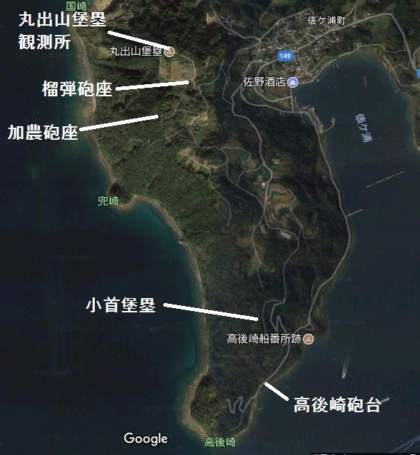 西海市面高郷、及び横瀬郷一帯には明治期の沿岸砲台や昭和期の防空砲台が点在しています。